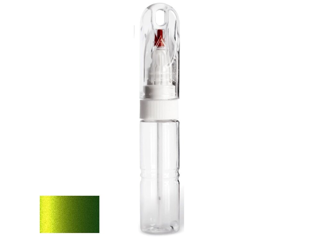 Samotná fľaštička má veľmi kompaktné rozmery, porovnateľné napríklad s hrubším fixom. Jej priehľadné telo obsahuje 20 ml farby na auto, namiešanej na presný odtieň podľa kódu výrobcu vášho vozidla. Vďaka špeciálnemu zloženiu farby je farba po zaschnutí lesklá a nie je potrebné ju prelakovať bezfarebným lakom bez ohľadu na to, či ide o klasický odtieň alebo metalízu.