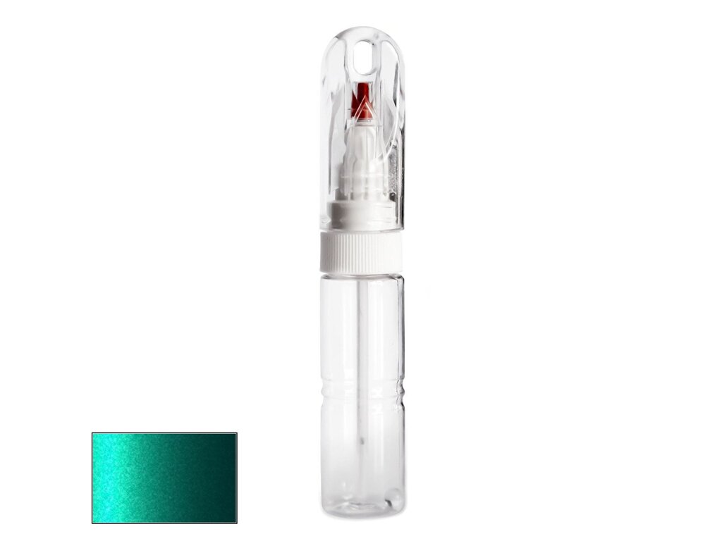 Samotná fľaštička má veľmi kompaktné rozmery, porovnateľné napríklad s hrubším fixom. Jej priehľadné telo obsahuje 20 ml farby na auto, namiešanej na presný odtieň podľa kódu výrobcu vášho vozidla. Vďaka špeciálnemu zloženiu farby je farba po zaschnutí lesklá a nie je potrebné ju prelakovať bezfarebným lakom bez ohľadu na to, či ide o klasický odtieň alebo metalízu.