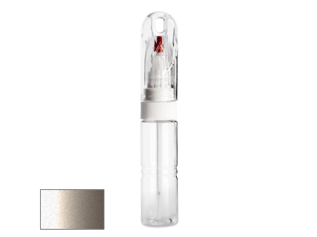 Samotná fľaštička má veľmi kompaktné rozmery, porovnateľné napríklad s hrubším fixom. Jej priehľadné telo obsahuje 20 ml farby na auto, namiešanej na presný odtieň podľa kódu výrobcu vášho vozidla. Vďaka špeciálnemu zloženiu farby je farba po zaschnutí lesklá a nie je potrebné ju prelakovať bezfarebným lakom bez ohľadu na to, či ide o klasický odtieň alebo metalízu.