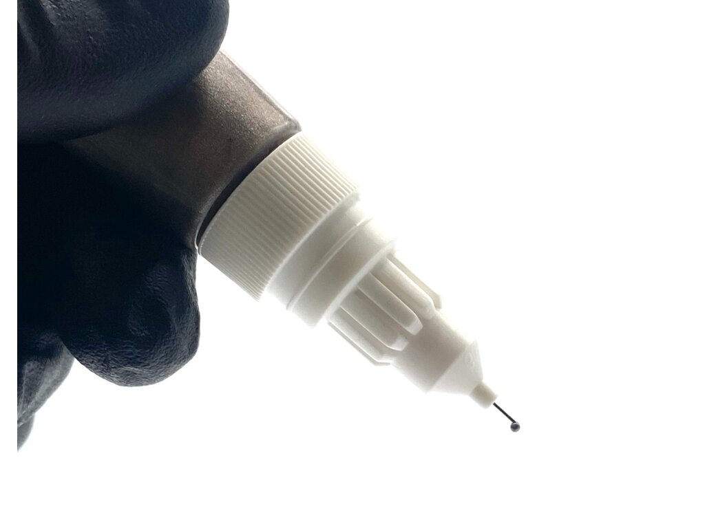 Špeciálny uzáver fľaše vám ponúka dva spôsoby nanášania farby: ihlou (alebo retušovacím hrotom ) a jemným štetcom. Najmenšie škvrny možno pomocou ihly upraviť kvapkou farby, zatiaľ čo väčšie škrabance možno premaľovať štetcom. Ihla a štetec sú integrované priamo do uzáveru fľaše.