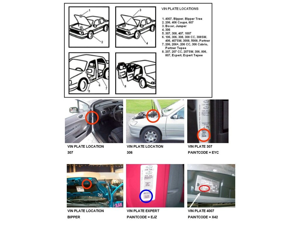 Na vozidle Peugeot nájdete farebný kód vo dverách vodiča alebo spolujazdca, môže sa nachádzať aj v motorovom priestore na spodnej strane kapoty, najmä na úžitkových vozidlách.