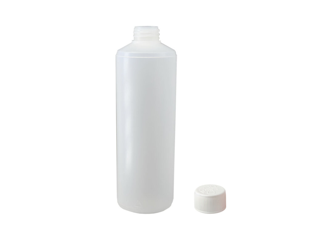 Táto plastová fľaša s bezpečnostným uzáverom je vysoko odolná voči rozpúšťadlám, takže je ideálna na rozlievanie/uchovávanie riedidiel, lakov, tmelov, čistiacich prostriedkov atď. Objem fľaše je 0,5 l.