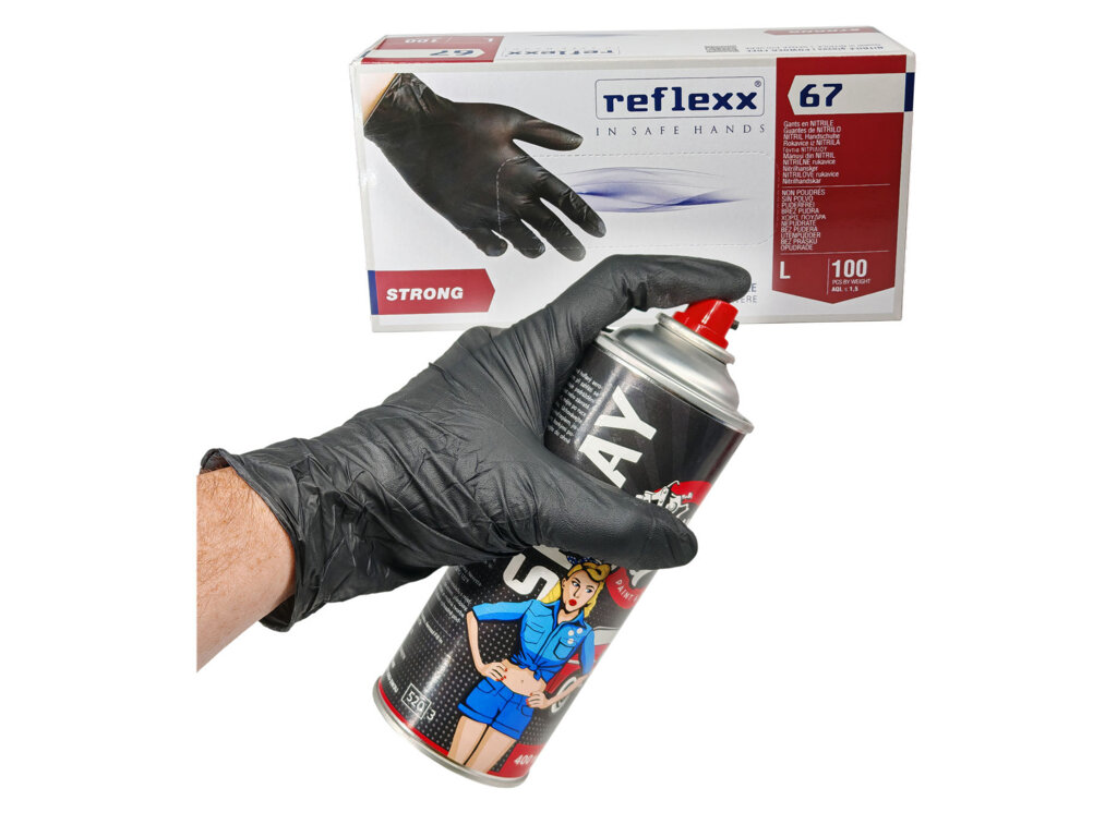 Čierne nepúdrové nitrilové rukavice Reflexx 67 Strong nájdu široké uplatnenie pri maľovaní. Sú napríklad skvelé na miešanie alebo prípravu náterov, aby sa zabránilo podráždeniu pokožky. Pri maľovaní tieto jednorazové rukavice ochránia vašu pokožku bez toho, aby vás obmedzovali pri práci.