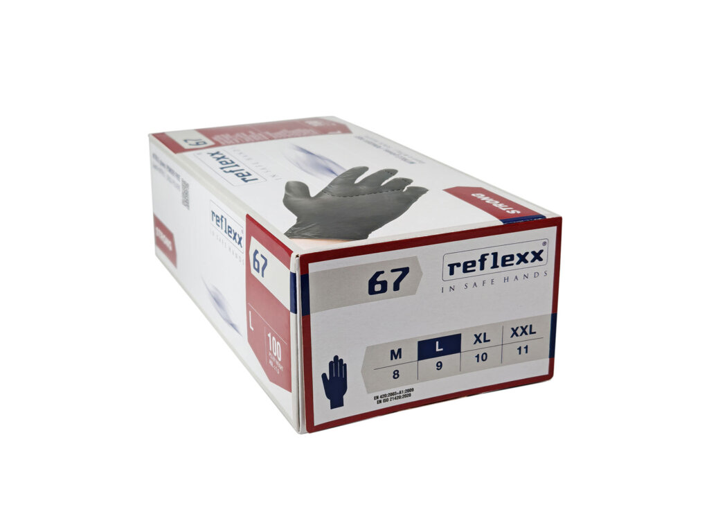 Do rukavíc Reflexx 67 Strong sa nepridáva žiadne práškové mazivo. Poskytujú ochranu pred nežiaducimi a nebezpečnými látkami. Majú zosilnenú manžetu na okraji, ktorá zabezpečuje jednoduché obliekanie a zabraňuje nadmernému obliekaniu. Vyznačujú sa vynikajúcou pevnosťou a zvýšenou odolnosťou proti prepichnutiu. Bez obáv ich môžu používať aj ľudia s alergiou na prírodný latex.