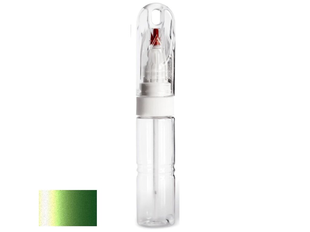 Samotná fľaštička má veľmi kompaktné rozmery, porovnateľné napríklad s hrubším fixom. Jej priehľadné telo obsahuje 20 ml farby na auto, namiešanej na presný odtieň podľa kódu výrobcu vášho vozidla. Vďaka špeciálnemu zloženiu farby je farba po zaschnutí lesklá a nie je potrebné ju prelakovať bezfarebným lakom bez ohľadu na to, či ide o klasický odtieň alebo metalízu.