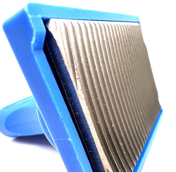 Škrabka má presne vyfrézované zuby ostré ako nôž, čo zaručuje povrch bez poškriabania. Obojstranná čepeľ pilníka je uložená v plastovom držiaku, ktorý umožňuje veľmi jemné nastavenie pomocou skrutiek. Po korekcii je možné opravovaný povrch okamžite prelakovať.