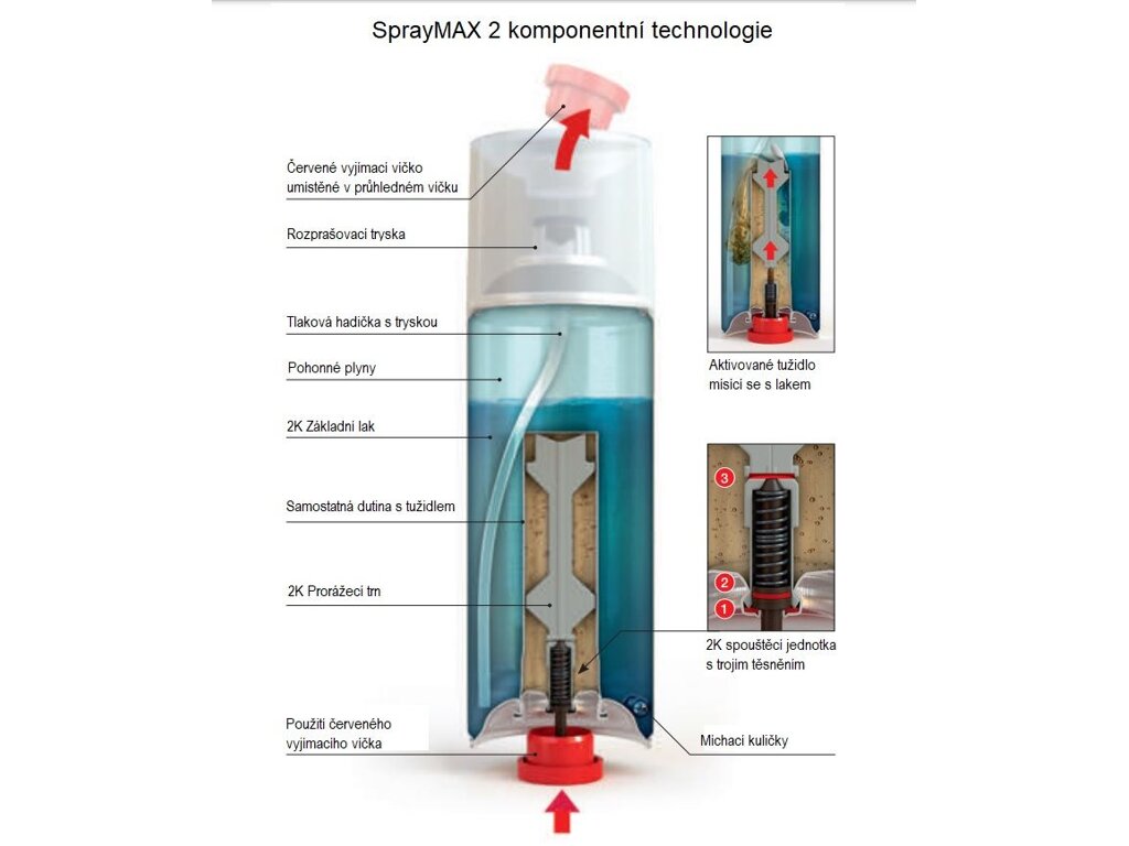 po nastriekaní je jej kvalita porovnateľná s bezfarebnými lakmi používanými v profesionálnych lakovniach. Pred použitím môžete ľahko aktivovať tužidlo, ktoré je zapuzdrené vo vnútri spreja, a po zmiešaní pomocou miešacích guľôčok môžete začať striekať.