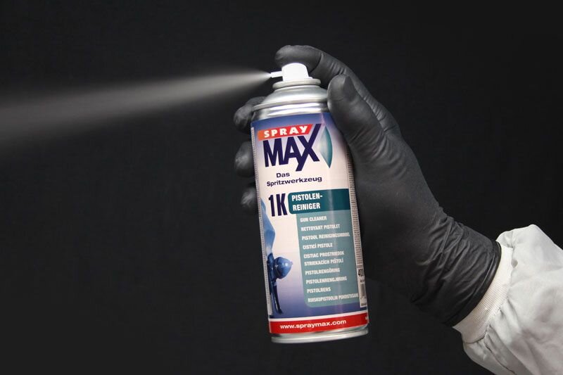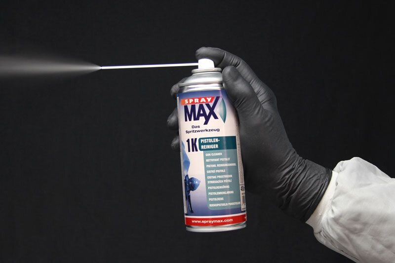 Čistiaci prostriedok na pištole SprayMAX umožňuje rýchle čistenie pištole bez zvyškov, najmä pri častom striekaní rôznych farieb pomocou systému jednorazových nádobiek. Profesionálne použitie.