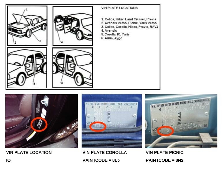Môže sa stať, že z nejakého dôvodu štítok s farbou chýba, v takom prípade môžete jednoducho zavolať do ktoréhokoľvek predajcu Toyota alebo autorizovaného servisu a tam vám na základe čísla VIN bezplatne poskytnú kód farby.